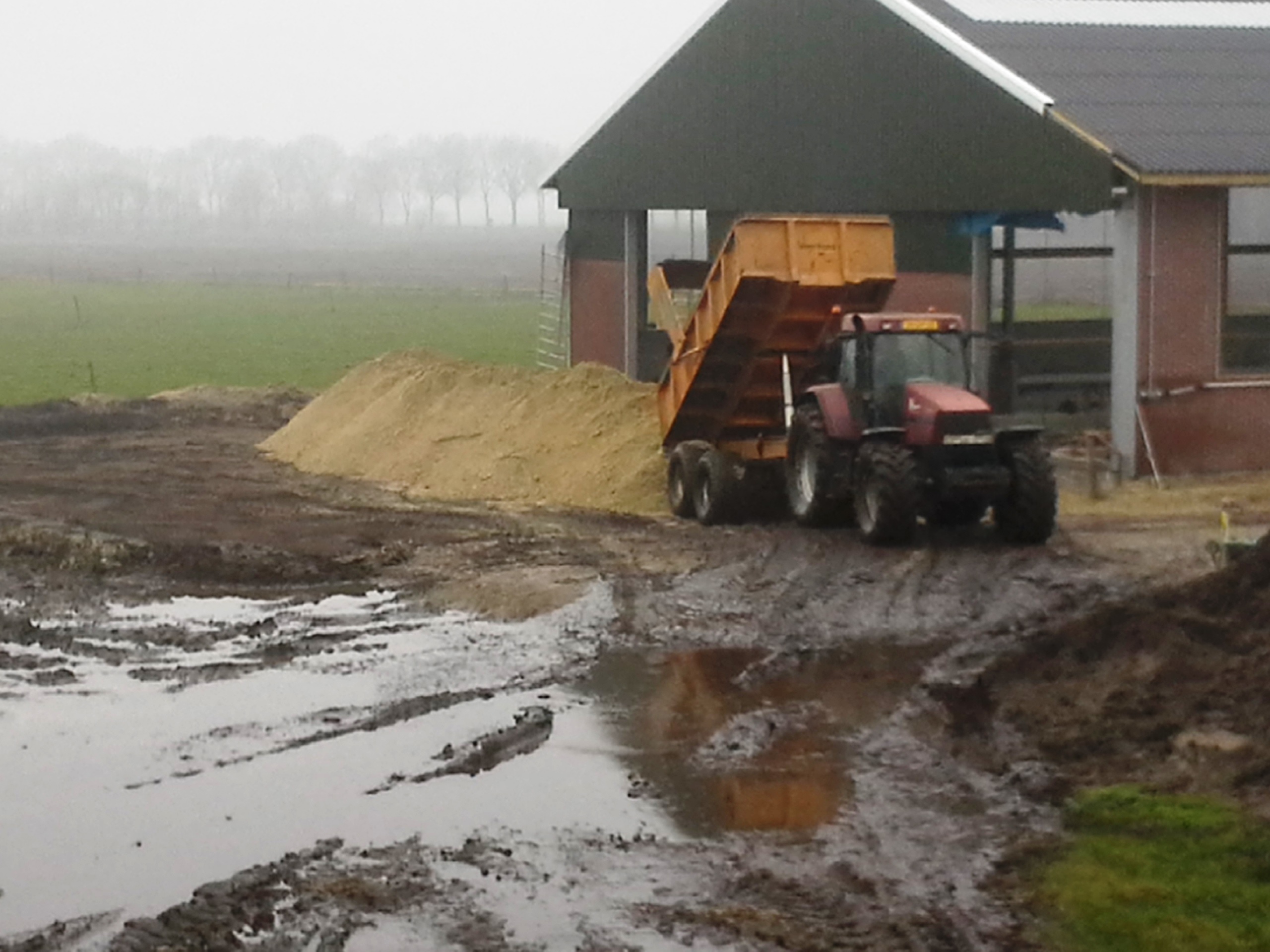 Regelmatig voeren wij het aanleggen van bestratingen uit. Dit varieert van kleinere bestratingen zoals een oprit of een terras, tot grotere bestratingen, zoals hier rondom een nieuwe melkveestal in Roosendaal.